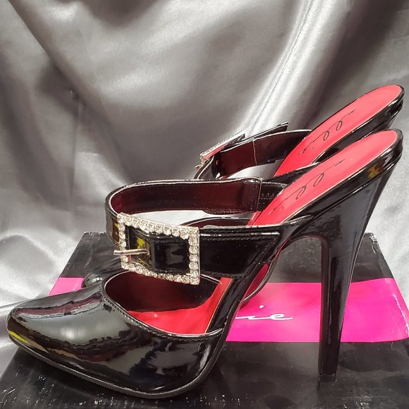 512-Tina Ellie Shoes, 5 inch high heels Fetish Closed Toe Pumps With Rhinestone Buckle shoes
