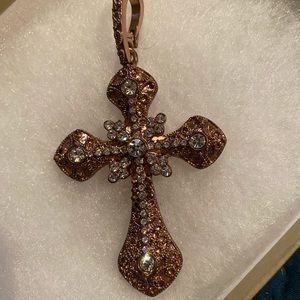 Black crystal cross✝️on bale enhancer 3 inches , probably Adrian on HSN. . Beautiful black link chain with little crystal circles 50 inches. Can double in your neck. See photo ,3 inch rose gold cross with crystals an enhancer big