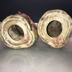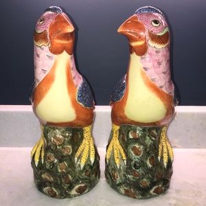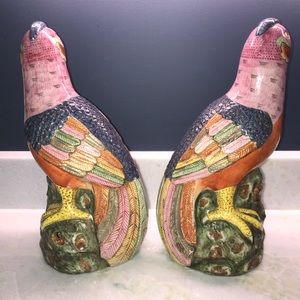 Fabulous pair of very colorful, hand-painted, large (12.75”), vintage Chinese birds from the estate of a significant collector. A wonderful, unique alternative to mantel dogs in a lush, Grandmillennial decor.