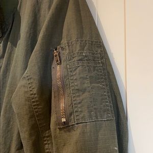 Military detail zipped arm pocket on the olive green.