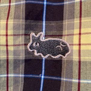 Jacket reverses from olive green to a yellow and black mix plaid for double the wearing options.