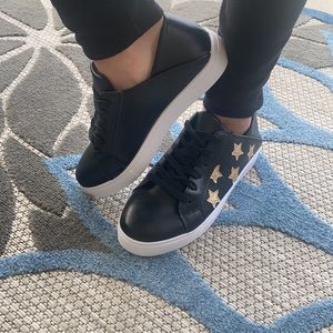 These Soho sneakers are very sporty and feature multiple gold star logos that are eye-catching for a very chic style. A great style for young and old alike! The color is black with gold stars.