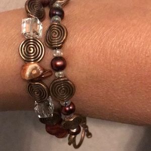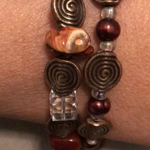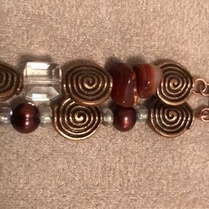 Swarovski crystal pearl agate 8” to 8 1/2” bracelet. Pearls are cranberry color and genuine pearls. Agates are genuine stones. Swarovski Crystals are 8mm cubes. Double strand toggle. Artisan made and unworn. Comes from a smoke free and pet free home. Tags: boho, Swarovski, pearls, long, large, toggle,