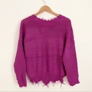 V-Neck Frayed Sweater