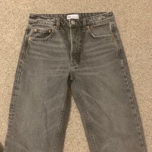 SOLD DO NOT BUY straight leg ankle length zara jeans! the cutest jeans ever, but they are too short (i’m 5’6). they have frayed edges, a button fly, and a really nice washed-out black wash. great condition.