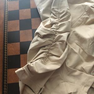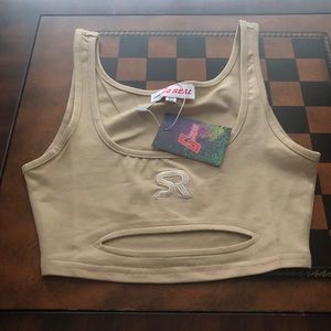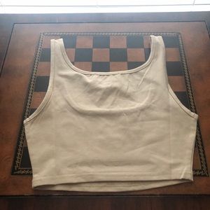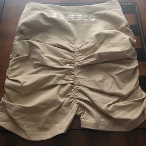 Nude Colored 2 piece brand new never worn or even tried on scrunch or on sides and back of booty so cute shirt is crop with a slit under boobs