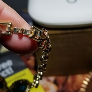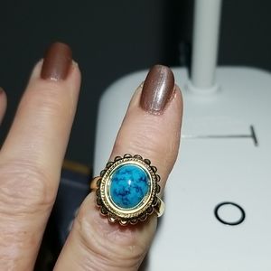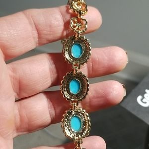 Beautiful heavy well made gold metal over simulated torquiose stones.