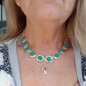 EB costume gold turquoise jewelry set