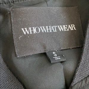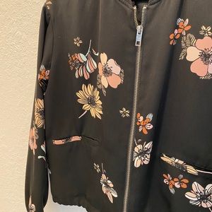WhoWhatWear small flower bomber jacket. Light material! Pockets in front are fake. Adjustable waist bottom.