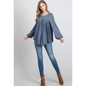 SOLD OUT Steel Blue Modal Long Sleeve Smocked Lace Tunic