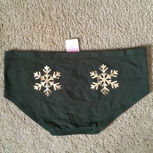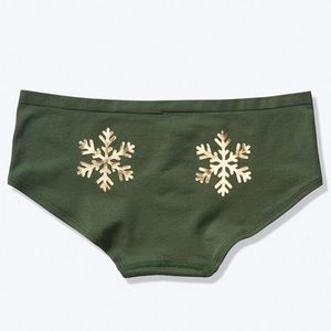 NEW with tags! VS PINK Seamless Hipster Panty color Enchanted Forest with Snowflakes on the back.