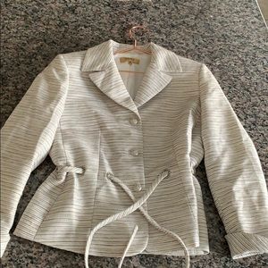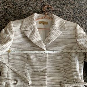 Kasper button down blazer fully lined EUC: Beautiful cream, tan, brown & silver buttons. Button down blazer with tie. This blazer is gorgeous, exquisite detail.