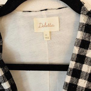 Beautiful black and white gingham lace top by Deletta from Anthropologie. I think i wore maybe once or twice. So I'm sending on to the next Anthro fan. In excellent condition. Size extra small. Good thickness to it.