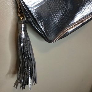 Silver, snake skin print.