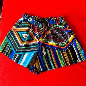 Adorable Fab’rik colorful boho print shorts with stretchy elastic waist and pockets on both sides.