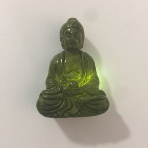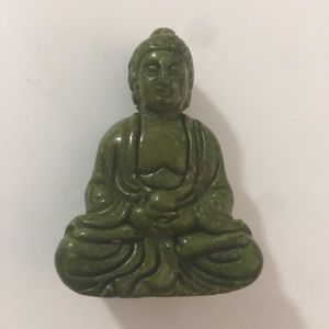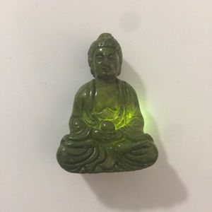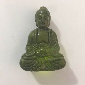 Beautiful hand carved green sitting Buddha Pendent. Hand Carved from amethyst. Semi translucent as shown in photos. Measures 2 1/4 inches high by 1 3/4 inches wide 3/4 inches thick. Very Jade Like appearance and heavy. Never worn , be the first. Very smooth with no sharp angles to scratch with. 02102021E