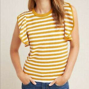 Anthropologie flutter sleeve sweater top. NWT size medium mustard gold with cream color. Soft and warm.