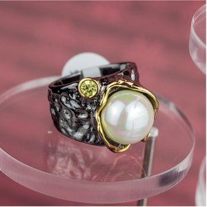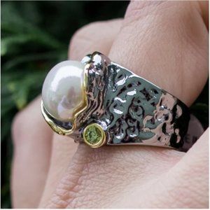 NEW Italian Jewelry Olivine Pearl Ring