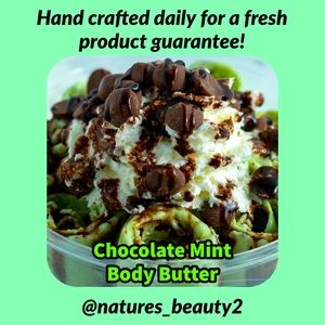 Smells so good, your going to want some mint chip ice cream on hand. Yummy 😋 made to quench your dry skin with Shea and vitamin E. Always made fresh. Hand crafted by me. Price is for one 5 ounce jar.
