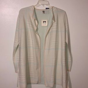 Anne Klein Ivory/Mint Green Long Cardigan Sweater