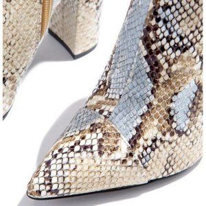 Pointy Toe Snakeskin Embossed Booties