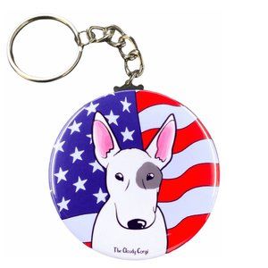 Bull Terrier Dog USA Flag Art Keychain Accessories