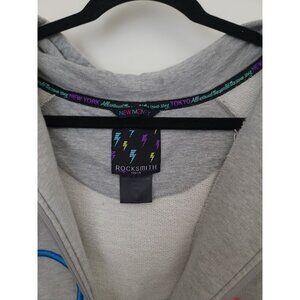 EUC Rocksmith Tokyo New Money Hoodie Streetwear Gray Zip-Up Sweatshirt Jacket. Raised embroidered "Rock Smith" in front. 2 exterior pockets. Sleeves are each a different tone of gray. 100% cotton