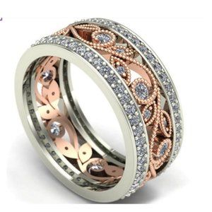 NWOT Lovely Woman's Pretty 925 Silver Rose Gold Plated With Simulated White Sapphires.