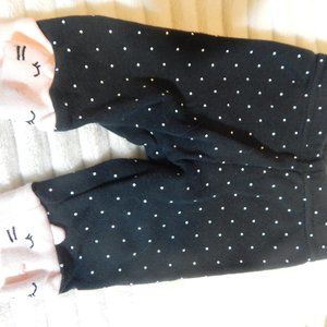 black with pink polka dot pants, with bunnies at the ankles