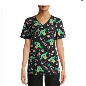 NWT! Perfect for those Star War fans who work in the healthcare field, this cute Mandalorian scrub top is perfect! Super soft & stretchy material that is comfortable to wear all day for those long & exhausting shifts. "Adorable I Am" along with baby Yoda AKA Mandalorin covers this cute scrub top!