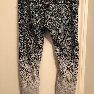Fun pattern Lulu tights! No tags but I think they are from the invigorate high rise line. Crops. Teal, black and white. Very thin, good shape and been worn a handful of times.