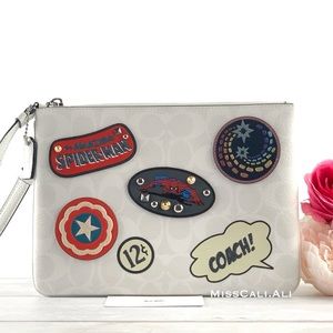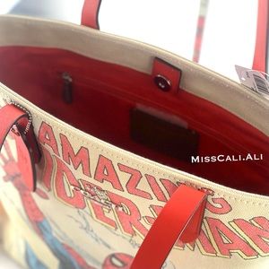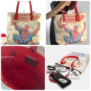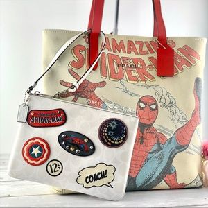 NWT COACH X MARVEL 2PC Spider-Man Tote Bag Gallery Pouch