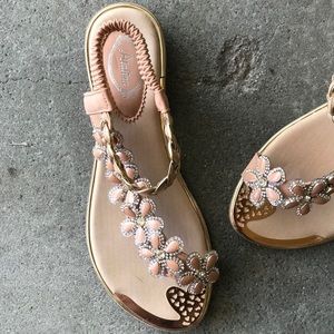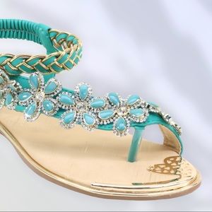 BEST SELLER Italina Floral Rhinestone Flat Sandals