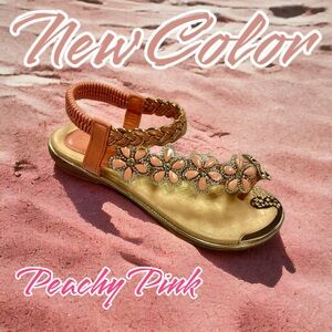 Italina Peach Floral Metallic Rhinestone elastic slingback flatform sandal