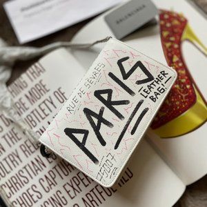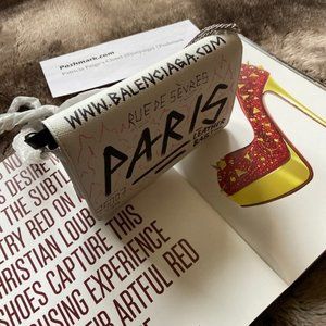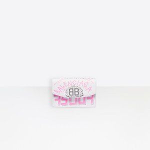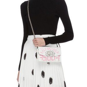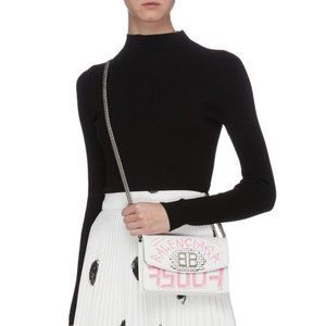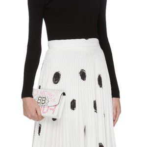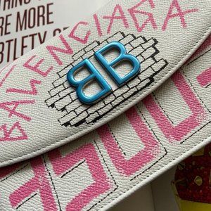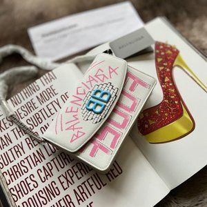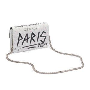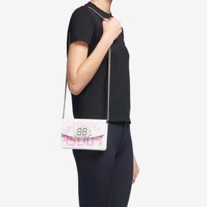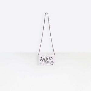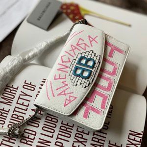 *NEW BALENCIAGA 'bb' Graffiti Print Leather Wallet On Chain In White