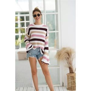 Beautiful striped white, tan, pink & brown with bell sleeves sweaters! Crewneck. Breathable fabric.