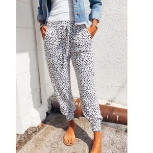 White and black leopard print pull on pant / jogger