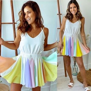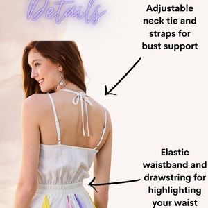 Romper season is almost here babe😍! Slay the romper game with this white strappy romper that has delicate pastel pleats and adjustable tie at the waist and at the neck💖. The romper is 100% polyester and the lining is 100% rayon