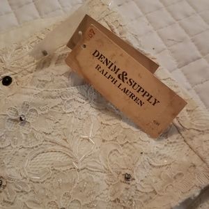 Ralph Lauren Denim & Supply lace and rhinestone denim shorts. Zip fly with button closure. New with tags.