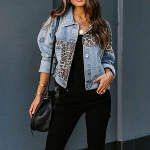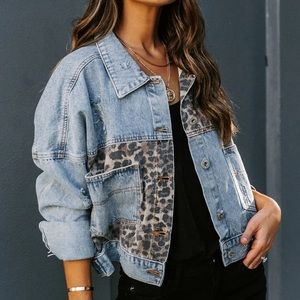 NWT POL Leopard Print Patchwork Denim Jean Jacket