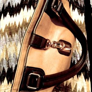 NEUTRAL TAN & CHOCOLATE BROWN VEGAN LEATHER TOTE /LAPTOP BAG