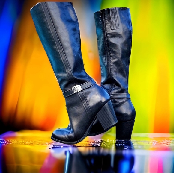Giani Bernini shoes boots are the best of Italian craftsmanship & European design. The Giani Bernini brand employs high-quality leathers Combine that with chic style that's both classic and contemporary and you get an unbeatable line of fashion. These boots also put a spotlight on superb comfort with brilliant elegance and lasting wear. In fantastic preowned condition minor scuffs and very stunning. Sold as photographed see pictures for Measurements. Calf has stretch, real leather quality boot.