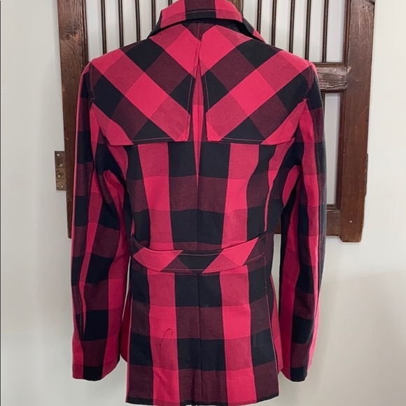 BUFFALO PLAID DOUBLE BREASTED COAT RED/BLACK SZ L