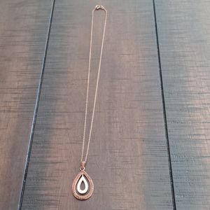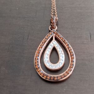 Rose gold plated, teardrop pendant with brown gemstones on outer piece and silver gemstones on inner piece. Like new. Worn once or twice.