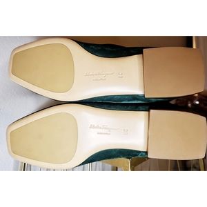 Authentic, Salvatore Ferragamo, emerald, suede boots with gold heel + hardware.