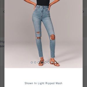NWT Abercrombie & Fitch high rise super skinny jeans with some distressing and raw hem. Light/medium wash denim. Never worn, love these jeans just a little too long for me.