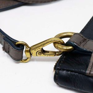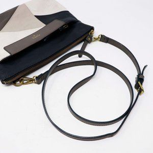 Vtg Fossil Geometric Black Gray White Grainy Leather Colorblock Crossbody Bag Women Size Medium. Detachable and Adjustable Crossbody strap with brass buckle, brass hardware, front zip slot pocket, rear open slot pocket, top zip closure, fully lined with grey flannel, interior zip pocket and two side slots.