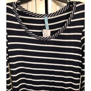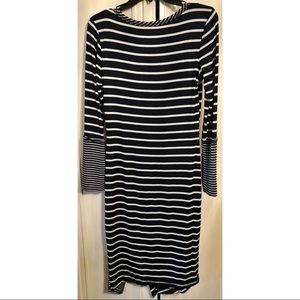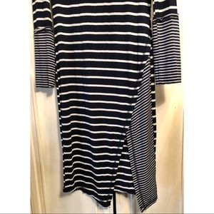 Women’s navy blue & white stripe dress with slit. Super soft and stretchy. Size M