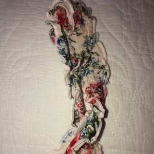 Gently worn. No signs of wear. Needs a good steaming. Cute all over eyelet floral fabric. Straps are ruffled with a bodice ruffle front and back. Has a thin cream lining.