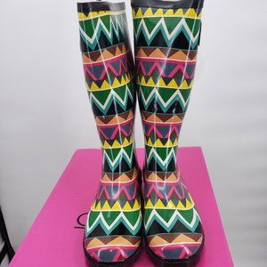 Corky's Sunshine Chevron pattern rubber Rain Boots Sizes 6,7 & 9.
